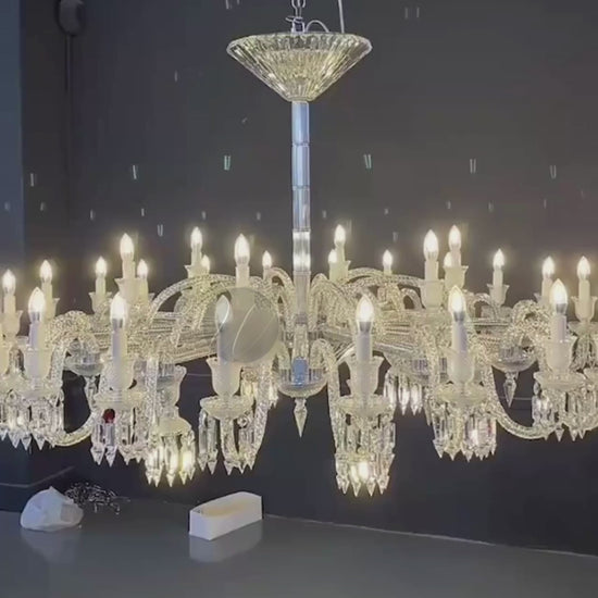 Dusk is a chandelier of still command—thirty-six arms in clear crystal extending with measured symmetry, shaped not for display but for composure. A single red crystal anchors the form—an emblem of resolve held within restraint. There is no excess, no demand; it does not fold, it endures. Chandelier of Dusk does not enter to impress—it settles, it composes, it receives.